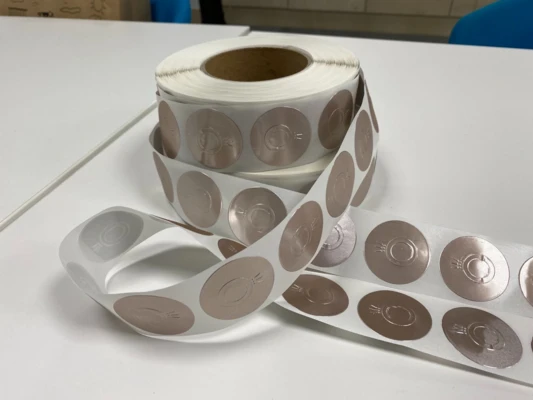 - Painetut etiketit kullattu/hopeapinnoitettu kuumaleimaamalla.