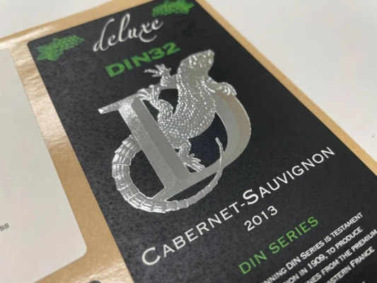 Painetut etiketit kullattu/hopeapinnoitettu kuumaleimaamalla.